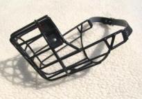Kovový náhubok s koženými remienkami na zapínanie pre fenu maďarského stavača