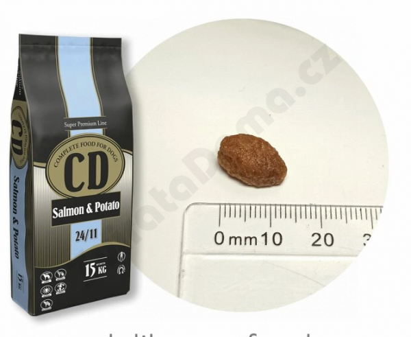 Zložka bielkovín je zabezpečená lososovou rybacou surovinou a glycidová zložka zemiakovým škrobom. Nenasýtené mastné kyseliny (Omega 3 a 6) sú vo vyváženom pomere. Obsah makro aj mikroprvkov plne pokrýva potrebu dospelého psa. Množstvo a podiel vitamínov plne zabezpečuje potrebné množstvo.