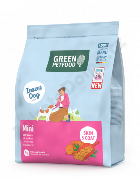 Zloženie: hmyz 20%, sušené sladké zemiaky 20%, hrachová múčka (prírodný zdroj aminokyselín, hydinový tuk, zemiakový proteín, sušené zemiaky, repná vláknina, čiastočne hydrolyzované kvasnice, minerálne látky, bylinky, ovocie (maliny, mäta, petržlen, arónia,