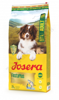 Oslávte vitalitu našich štvornohých priateľov: Josera FiestaPlus pre dospelých psov nielenže spestruje ich jedálniček vďaka svojim dvojfarebným granulám. Červené Vital Booster Chips v tomto krmive pre dospelých psov poskytujú vášmu psovi extra impulz k vitalite vďaka cenným vitamínom, taurínu a L-karnitínu. Lososová príchuť robí toto bezlepkové krmivo pre psov ešte chutnejším pre našich psích spoločníkov. Vylepšená receptúra obsahuje aj ešte viac lososových bielkovín ako predtým.