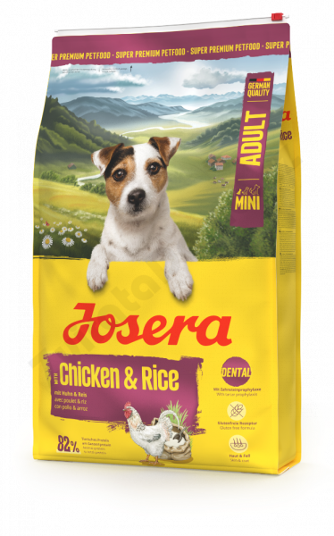 Zloženie: sušený hydinový proteín 31% (z toho kuracie 40%), celozrnná kukurica, ryža 15%, hydinový tuk, repné rezne, hydrolyzovaný hydinový proteín, minerálne látky (trifosforečnan sodný 0,35%), hydrolyzovaný živočíšny proteín, kvasnice, sušený koreň čakanky (prírodný zdroj inulínu)