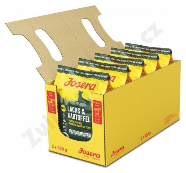 - S 19% sušeného lososa ako jediného zdroja bielkovín (zodpovedá asi 65g čerstvého mäsa na 100g suchého krmiva)