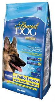 Prémiový rad s čerstvým kuracím mäsom je výživné a stráviteľné krmivo pre vyváženú stravu. Ide o kompletné krmivo, špeciálne vyrobené pre každodennú stravu dospelých psov, ktorí vykonávajú bežnú fyzickú aktivitu. Má vyvážený obsah bielkovín a energie a je doplnené multivitamínovým komplexom A-D-E. Je vyrobené z najkvalitnejšieho vybraného mäsa a zdrojov sacharidov, ktoré sú vďaka spôsobu úpravy ľahko vstrebateľné. Obsahuje FOS (fruktooligosacharidy), ktoré pomáhajú regulovať črevnú flóru, a Yucca Schidigera, ktorá znižuje zápach stolice. Zaručuje optimálny pomer medzi mastnými kyselinami Omega-3 a Omega-6 pre krásnu srsť. So Special Dog Regular bude váš psí priateľ vždy v dobrej kondícii.