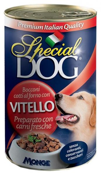Zloženie: mäso a mäsové deriváty 45% (čerstvé teľacie mäso 14%), obilniny, vajcia a vaječné výrobky, minerálne látky