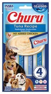 Táto receptúra s tuniakom obsahuje 4 lahodné krémové maškrty vyrobené z voľne žijúcich tuniakov a to bez obilnín, konzervantov a umelých farbív. Churu môžete podávať priamo z ruky, samostatne z misky alebo sú ideálne do lízacej podložky. Maškrty Churu majú vysoký obsah vody a vďaka tomu sú vhodným doplnkom k suchému krmivu, na rýchle doplnenie tekutín a pre psov, ktorí málo pijú. Maškrty Churu sú 100% prírodné a zdravé maškrtenie pre psov všetkých vekových kategórií. Churu sú tiež ideálne na ukrytie tablety na odčervenie či iného lieku, ktorý je potrebné psovi nenásilne podať.
