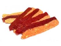 Doplnkové krmivo pre psov z lisovanej prírodnej kože obohatené o sušené kuracie mäso