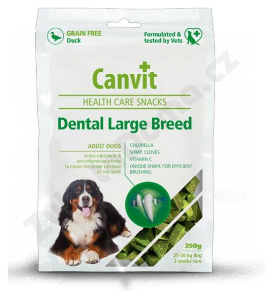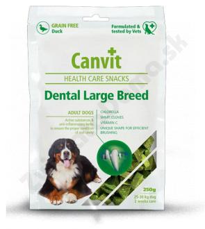 Zubný kameň, plak a zápal ďasien je u psov veľmi častý problém, ktorý sa u psov prejavuje nepríjemným zápachom z úst, krvácaním z ďasien, bolestivosťou, neochotou hrýzť a často končí vytrhnutím zuba. Jedinou účinnou starostlivosťou o zuby je prevencia zameraná na zníženie tvorby zubného plaku. Chlorella, klinček, omega-3 nenasýtené mastné kyseliny, kolagén a hexametafosfát účinne potláčajú vznik zubného plaku a ďalej majú protizápalový, antiseptický a hojivý účinok na sliznicu ďasien. Maškrta Canvit Dental Health Care Snack sa účinne stará o zdravé zuby a ďasná, a navyše vášmu psovi skvele chutí.