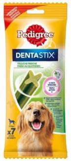 Pohodlné riešenie zubnej hygieny Vášho psa.Aj u psov je dôležité každodenne sa starať o čistotu chrupu.Pedigree Denta Stix Fresh čistia zuby a udržujú zdravé ďasná.Vďaka obsahu eukalyptu a extraktu zo zeleného čaju (bez obsahu kofeínu) sa zmenšuje zápach zo psej tlamy.Podľa klinických testov sa pri pravidelnom používaní Pedigree Denta Stix Fresh môže obmedziť vznik zubného kameňa až o 80%.Hlavnú zásluhu na tom má špeciálne textúra a obsah aktívnych účinných látok.