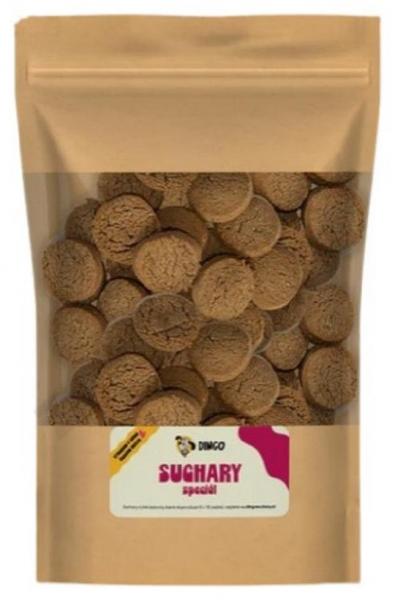 Výborné a pomalu pečené suchary slouží jako doplňkové krmivo. Jsou tedy vhodné pro každého pejska jako pamlsek a doplněk každodenní stravy. Přirozeným způsobem čistí chrup a tím zabraňuje tvorbě zubního kamene. Křupavá dobrota, která je vhodná i pro psy s citlivým zažíváním. Složení: pšeničná mouka, hovězí vývar, ječné kroupy, minerální látky, krmné kvasnice, sušené mléko.Deklarované jakostní znaky: vlhkost 17%, proteiny 5,0%, tuk 3%, vláknina 4,0%, vápník 1,0%
