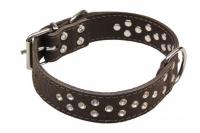Kožený obojok zdobený tmavo hnedý 1×26cm AKCIA