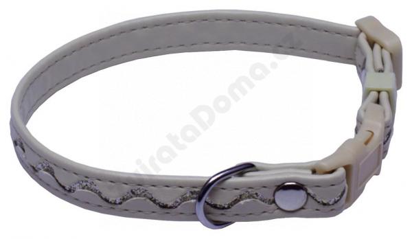 Obojok koženka strieborné vlnky - béžový 1,2×20-35cm AKCIA